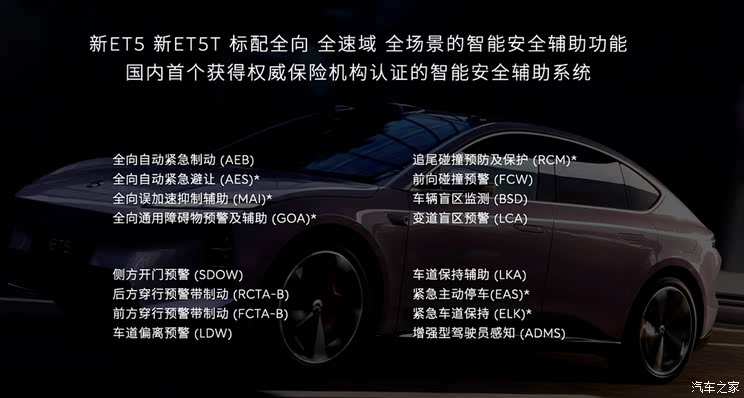 新款ET5系列的智能辅助驾驶硬件进一步向旗舰车型ET9靠拢,配备了1颗ET9同款的高精度激光雷达,等效300线高分辨率,最远探测距离500米。同时,还配备了1颗ET9同款的前向4D成像雷达,最远探测距离达到370米。此外还拥有12个超声波雷达、7个800万像素摄像头、4个环视摄像头。6月底推送点到点智能辅助驾驶。