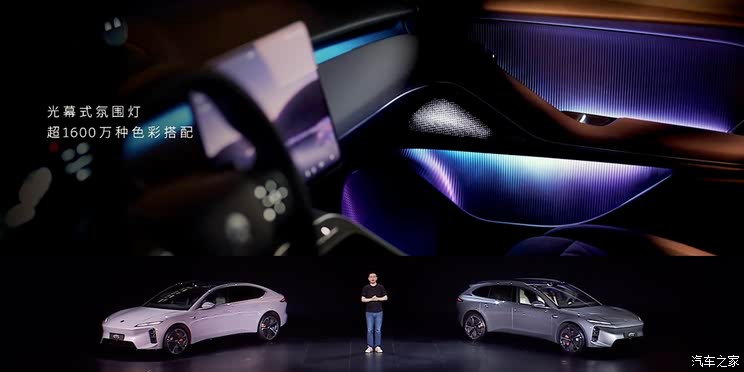 新款ET5系列的氛围灯确实更有感觉,采用了时下流行的漫反射间接照明,提供256种颜色可选,门板处可双色撞色调节。基于此还衍生出更多玩法,比如更有沉浸感的开机动画氛围灯、灯光联动欢迎灯效以及结合时节、纪念日特调氛围灯等。