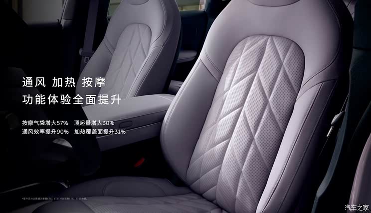 舒适性的升级则主要体现在座椅方面,座椅内部升级为11层材质,坐垫造型升级为两段式,前排靠背腰托下降30mm,新增坐垫20mm高回弹海绵,后排坐垫加长15mm等。总结下来就是更软,更舒服。此外前排座椅标配了按摩功能,再也不用选装了。