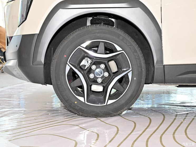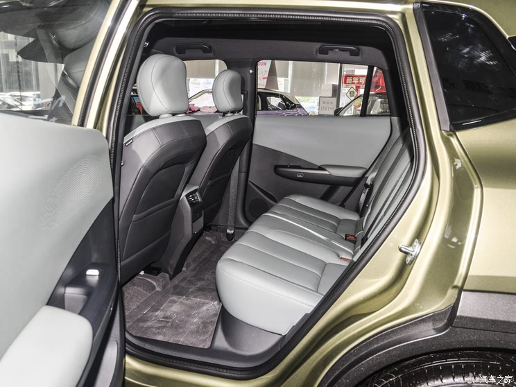 新车的侧面线条简洁流畅,隐藏式的A、B柱设计巧妙的营造出了悬浮车顶的视觉效果。此外,新车腰线平直的贯穿车身至尾部,前后侧翼子板搭配宽厚的黑色轮眉,配合17英寸低风阻双色轮圈,以及半隐藏门把手,整体搭配强化了车辆的动感姿态。车身尺寸方面,新车长宽高分别为4306/1868/1645mm,轴距2715mm。