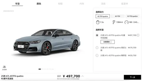 2025款奥迪A7L悄无声息登陆官网,价格配置纹丝不动,连生产日期都和现款无缝衔接——这波操作,连'挤牙膏'都算不上了。"作为上汽奥迪的旗舰轿车,A7L这次年度更新堪称汽车界的"薛定谔改款":你说它没改吧,它确实换了年款;你说它改了吧,连轮毂样式都没换新。