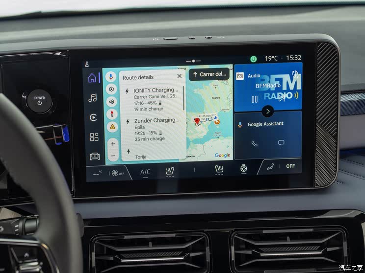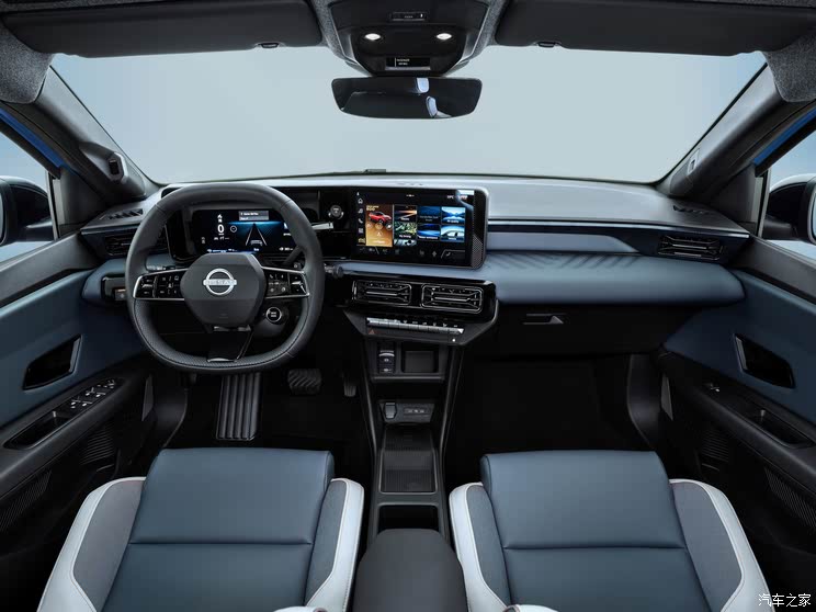 新车内的设计则基本遵循了雷诺5的布局,例如配备了双10.1英寸全液晶仪表盘+中控多媒体触控屏的连屏设计,并搭配三辐式多功能方向盘,同时操作台整体角度偏向驾驶员一侧,拥有更好的人体工程学。中控台通道区域设置了空调出风口与物理功能按键,下方是电子换挡机构和储物空间。
