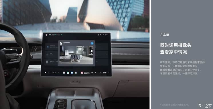从左到右贯穿整个内饰的小米天际屏是内饰最大的亮点,该屏幕提供了车辆速度信息、导航信息、多媒体信息等,相比SU7的仪表屏和抬头显示,新的环视投影屏位于中控台之上,减少驾驶员低头的频次,同时屏幕的显示效果也更理想。中控屏依然采用悬浮式方形造型,屏幕边框更薄。小米澎湃OS车机系统可以实现三个界面同时展示,并可以随时将手机应用转移到车机屏幕上,拓展后排Pad屏幕加入联动,此外,还能实现与家庭的小米生态互联。中控台下方会有一个不错的储物空间,和目前主流车型的设计保持一致。
