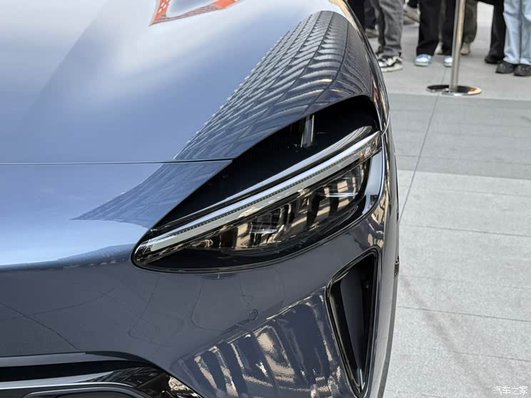 YU7前大灯组采用十字交叉的LED日行灯设计,上部为风道,下部为两个透镜灯组。新车的前唇向前凸起,前包围的进气口造型比SU7更夸张。车头顶部全系标配激光雷达。