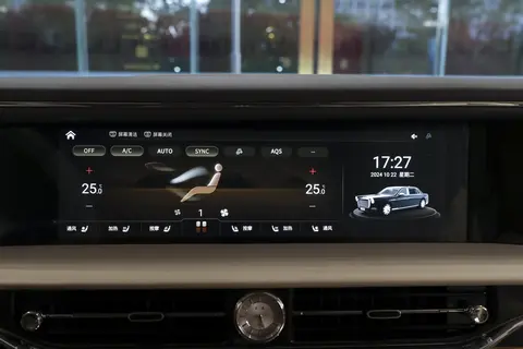 典藏版的内饰则完全是 “国礼级的奢华体验”:24K 金丝刺绣云龙纹座椅的触感更显细腻,金丝在光线下会呈现出柔和的光泽,龙纹图案从座椅靠背延伸至坐垫,线条连贯生动,用手触摸能感受到刺绣的凹凸质感,每一处针脚都体现了非遗工艺的严谨;江河湖海大漆饰板上的山水图案,采用多层髹漆工艺,立体感极强,仿佛将一幅水墨画嵌入了座舱,与定制版的玉饰板相比,文化意境更浓厚。